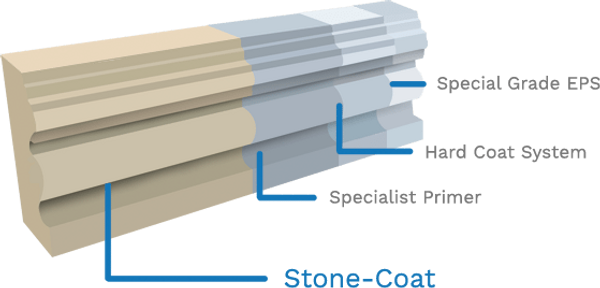 From the more complex shapes of columns and ballustrades, to a simple band course, Stone - Coat offers you total design flexibility.